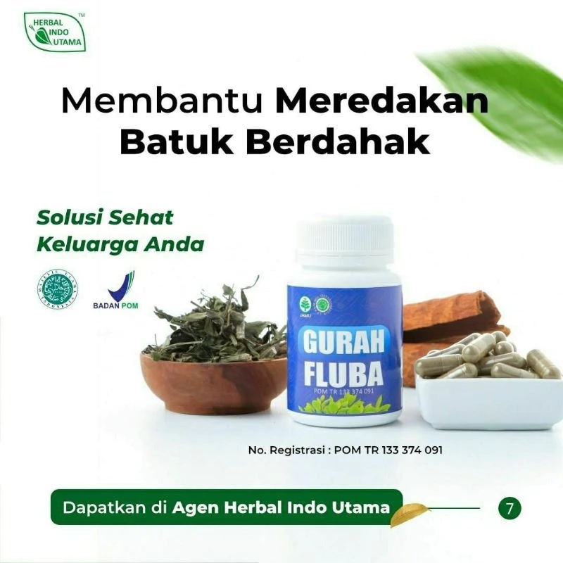 Gurah Fluba adalah formulasi herbal yang memadukan ramuan gurah sebagai warisan nenek moyang dangan ramuan herbal alami lainnya sehinnga memiliki efek farmakologi sinergis dan insya Allah akan menghasilkan ramuan yang mujarab. Pemakaian Gurah Fluba adalah diminum bukan diteteskan ke hidung karena berupa kapsul sehingga praktis dan nyaman digunakan baik wanita, pria, muda dan tua. Gurah Fluba adalah ramuan yang ditujukan sebagai solusi alami gangguan pernafasan.