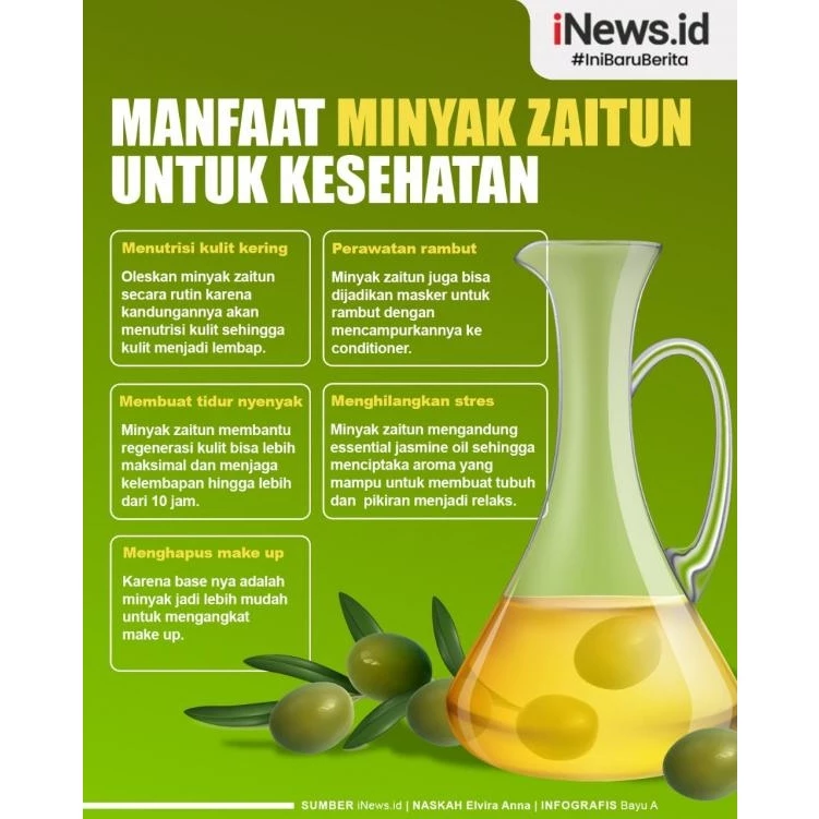 Minyak Zaitun Tursina Extra Virgin Olive Oil 300ml MJA merupakan jenis minyak Zaitun yang murni dan banyak berkhasiat untuk kesehatan dan penyembuhan berbagai macam penyakit. Minyak zaitun ini merupakan hasil ekstraksi pertama dari 100% buah Zaitun berkualitas tinggi yang mudah diserap tubuh dan juga mudah dikeluarkan leh tubuh jika berlebihan tanpa menimbulkan efek samping. Selain itu produk Minyak Zaitun ini telah mendapatkan ijin edar dari DINKES sehingga kualitasnya tidak perlu diragukan lagi. Konsumsilah secara rutin dan rasakan khasiatnya. Jagalah selalu kesehatan anda.