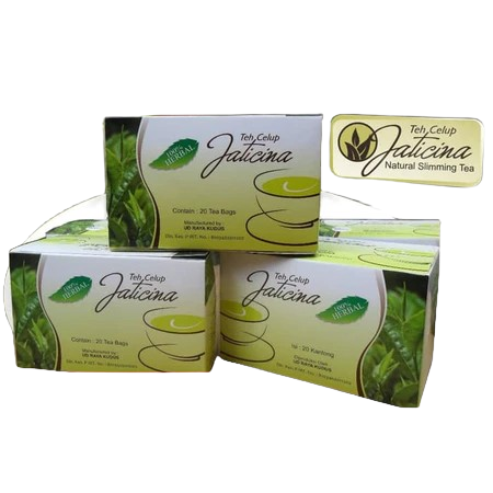 Teh Celup Jaticina 20 Kantong Cap Tiga Daun terbuat dari daun jati cina segar yang diformulasi dengan green tea yang kaya akan antioksidan alami. efektif sebagai pelangsing alami dan memperbaiki metabolisme pencernaan. Produk Teh Celup Jaticina ini dibuat dari 100% ekstrak herbal dan tanaman alami, sehingga mudah diserap tubuh dan juga mudah dikeluarkan tubuh jika berlebihan tanpa menimbulkan efek samping. Produk ini telah mendapatkan izin edar BPOM (Badan Pengawas Obat Makanan). Oleh karena itu, kualitasnya tidak diragukan lagi. Konsumsilah secara rutin dan rasakanlah khasiatnya. Jagalah selalu kesehatan Anda.